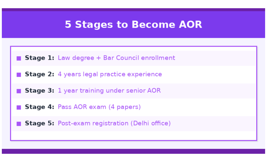 After clearing the AOR exam, you must complete your registration with the Supreme Court to officially become an Advocate on Record.