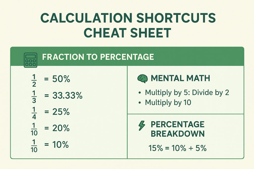 Memorizing common fraction-to-percentage conversions eliminates calculation entirely: