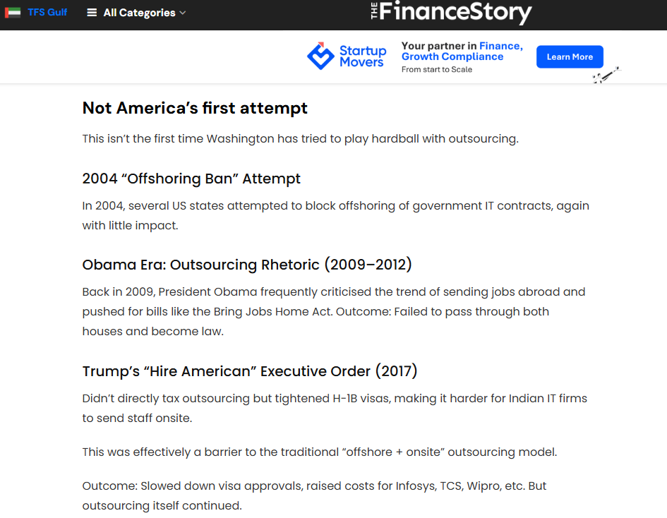 Some critics point to Senator Bernie Moreno’s proposed HIRE Act, which seeks to impose a 25% excise tax on outsourcing payments and eliminate tax deductions for offshoring.