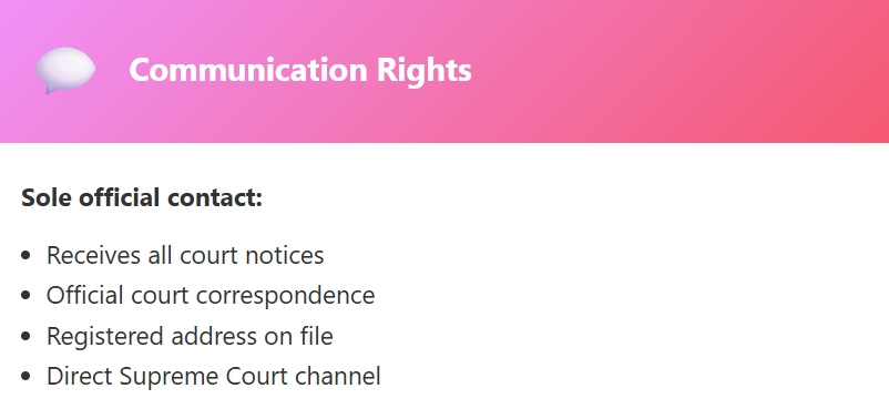 Communication privileges are equally important as filing privileges, though they get less attention. These privileges make the AOR the sole official channel of communication between the Supreme Court and the client, every notice, summons, and correspondence flows through the AOR. This creates both privilege and responsibility. Let me explain how this system works and why it matters.
