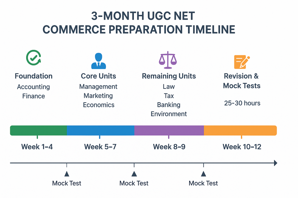 Now that you understand the syllabus and weightage patterns, let’s translate this knowledge into an actionable preparation strategy. The key to cracking UGC NET Commerce Paper 2 is not just studying hard but studying smart, focusing your energy on high-return areas while maintaining comprehensive coverage. Your preparation approach should be structured, time-bound, and regularly evaluated through mock tests.