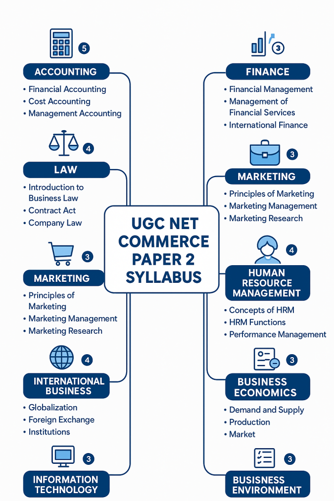 UGC NET Commerce Paper 2 syllabus with unit-wise weightage analysis, 10-unit breakdown, previous year trends, and strategic preparation guide. Master all units and qualify with confidence.