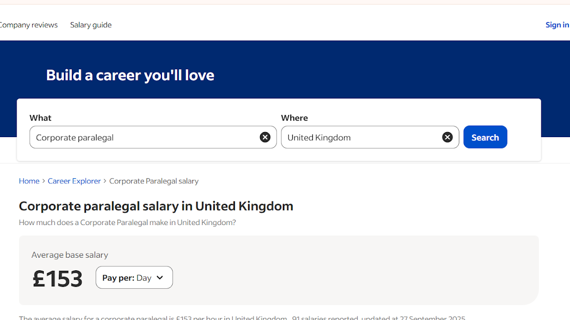 | UK Corporate paralegal | £15–40/hour |